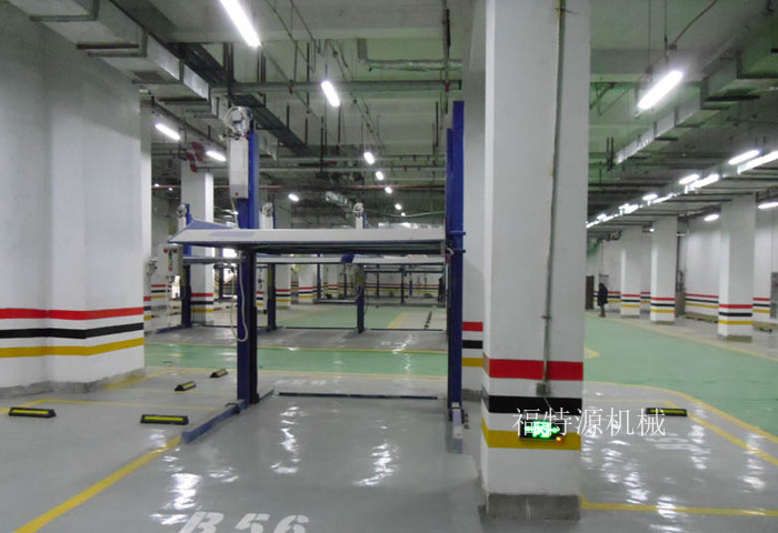 雙柱立體停車設(shè)備采用波浪般平臺(tái)、液壓傳動(dòng)系統(tǒng),液壓泵輸出高壓油推動(dòng)液壓缸,液壓缸帶動(dòng)鋼絲繩,實(shí)現(xiàn)載車板同步平穩(wěn)上升或者下降,達(dá)到存取車的目的。停車設(shè)備的上下車位為一個(gè)單元。下層車輛可直接存取,存取上層車輛時(shí),需將下層車輛開(kāi)出。