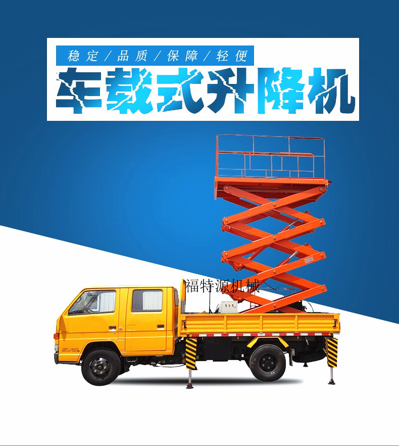 車載式升降平臺(tái)是為提高升降設(shè)備的機(jī)動(dòng)性,將各種形式的升降設(shè)備固定在汽車或電瓶車上,它連接汽車或電瓶車引擎動(dòng)力,實(shí)現(xiàn)作業(yè)平臺(tái)的升降功能。以適應(yīng)廠區(qū)內(nèi)外的高空作業(yè)。 廣泛應(yīng)用于賓館、大廈、機(jī)場(chǎng)、車站、體育場(chǎng)、車間、倉庫等場(chǎng)所的高空作業(yè);也可作為臨時(shí)性的高空照明、廣告宣傳等。采用各種汽車底盤的加固平臺(tái)底架,利用本車動(dòng)力在變速箱上獲取動(dòng)力驅(qū)動(dòng)油泵,無需外接電源,操作靈活簡(jiǎn)單、移動(dòng)方便、機(jī)動(dòng)性強(qiáng)、工作范圍大。汽車底盤有解放、東風(fēng)、江鈴、福田、三輪車、拖拉機(jī)等車型;該升降機(jī)廣泛應(yīng)用于市政建設(shè)維護(hù)、路燈維修、園林修剪、電路檢修、高速公路維護(hù)等場(chǎng)所的高空作業(yè);也可作為臨時(shí)性的高空照明、廣告宣傳等。本廠支持定制各種規(guī)格的升降設(shè)備。