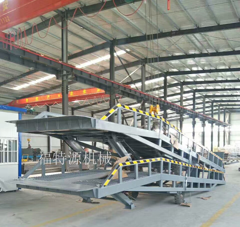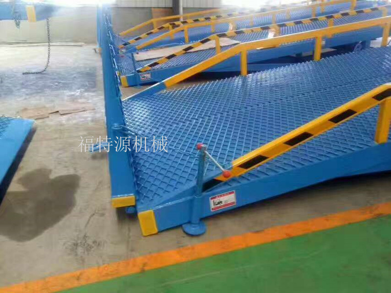 登車橋分為固定式、移動式兩種,采用國產(chǎn)/進口液壓系統(tǒng)。它的主要作用是在貨臺與運輸車輛之間搭起一座橋,使叉車便利地行駛,達到高效裝卸貨目的。該設(shè)備一端與貨臺等高,另一端搭在車廂后沿,并能根據(jù)不同的車型及裝車過程中車廂的高低變化,自動調(diào)整高度。該產(chǎn)品可根據(jù)用戶的不同需要,在外形尺寸、承受載荷等方面特殊設(shè)計。