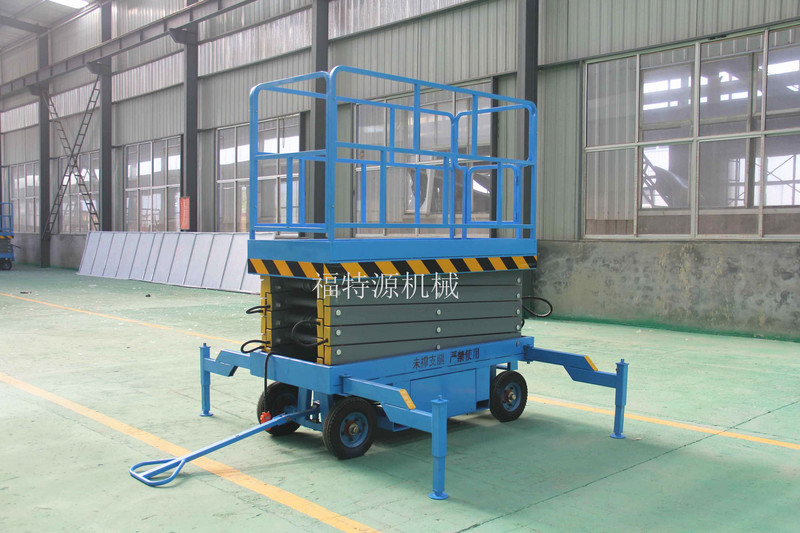 液壓升降平臺移動方式可分為:四輪移動式、兩輪牽引式、汽車改裝式、電瓶車式、輔助自行式、軌道行走式、起升高度從0.3米至22米不等。此系列產(chǎn)品載重分為0.1至2噸,也可根據(jù)用戶要求定做,載重可達170噸。
