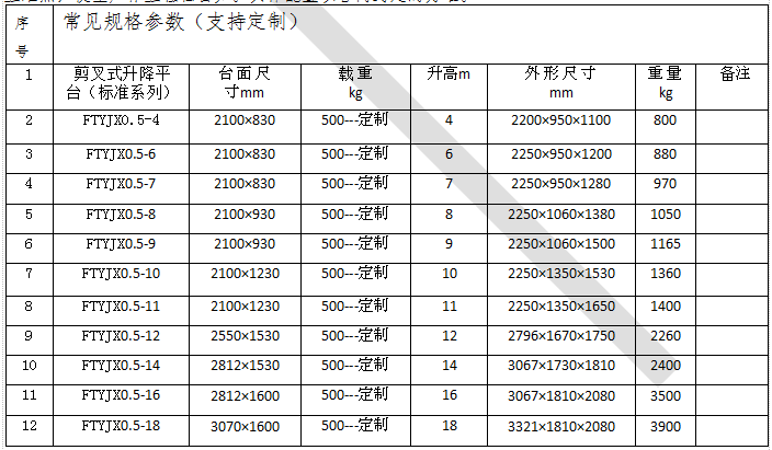 用途:產(chǎn)品廣泛應(yīng)用于各個行業(yè),如市政、物業(yè)、停車場、寫字樓、工礦企業(yè)、生產(chǎn)線、鐵路、機場、軍用、車站碼頭、貨物裝卸升舉、廠房工地、倉儲物流、高空設(shè)備安裝建筑工地等場合。滿足不同作業(yè)高度的升降需求,同時可配裝各類臺面形式(如滾珠、滾筒、轉(zhuǎn)盤、轉(zhuǎn)向、傾翻、伸縮),配合各種控制方式(分動、聯(lián)動、防爆),具有升降平穩(wěn)、頻繁啟動、載重量大等特點,有效解決工業(yè)企業(yè)中各類升降作業(yè)難點,使生產(chǎn)作業(yè)輕松自如。具體配置以合同約定的為準(zhǔn)。