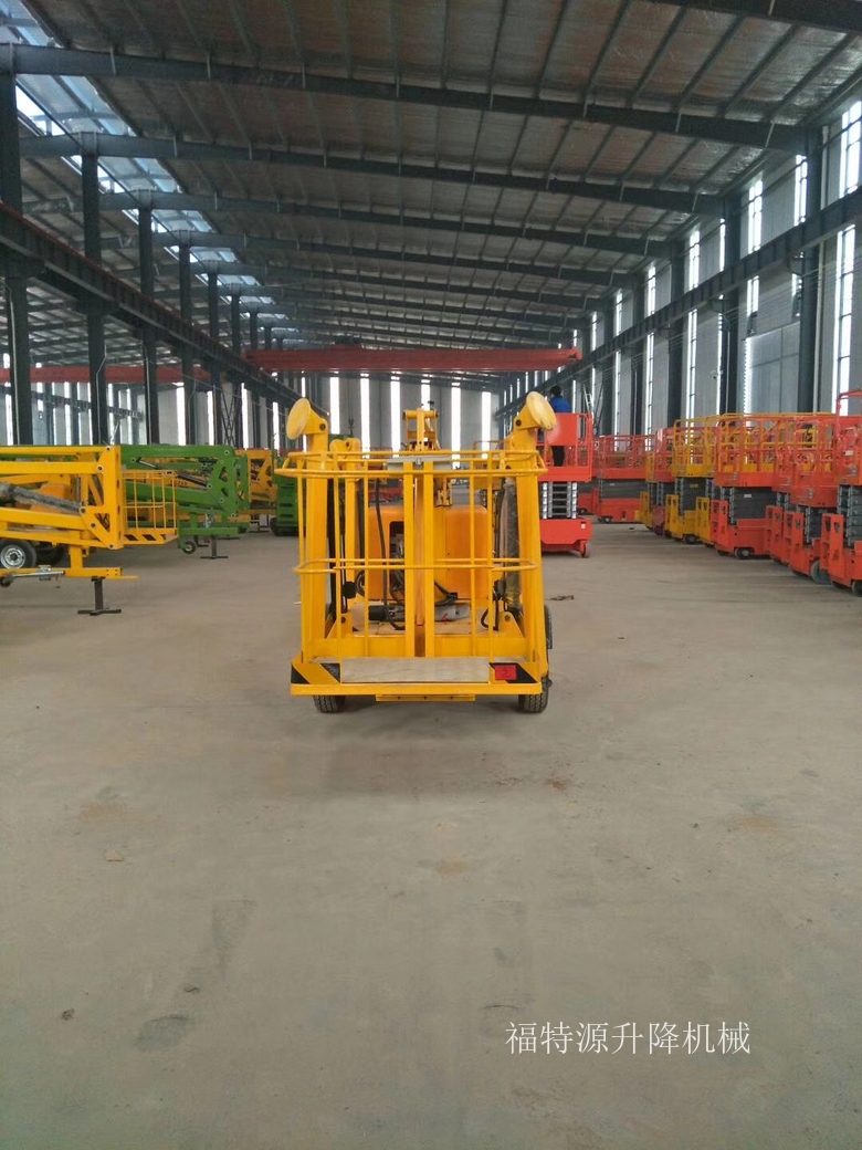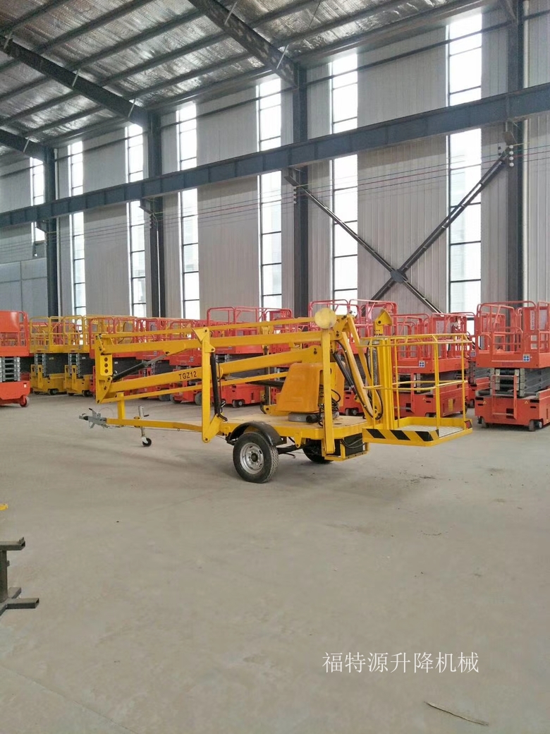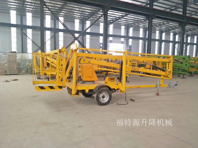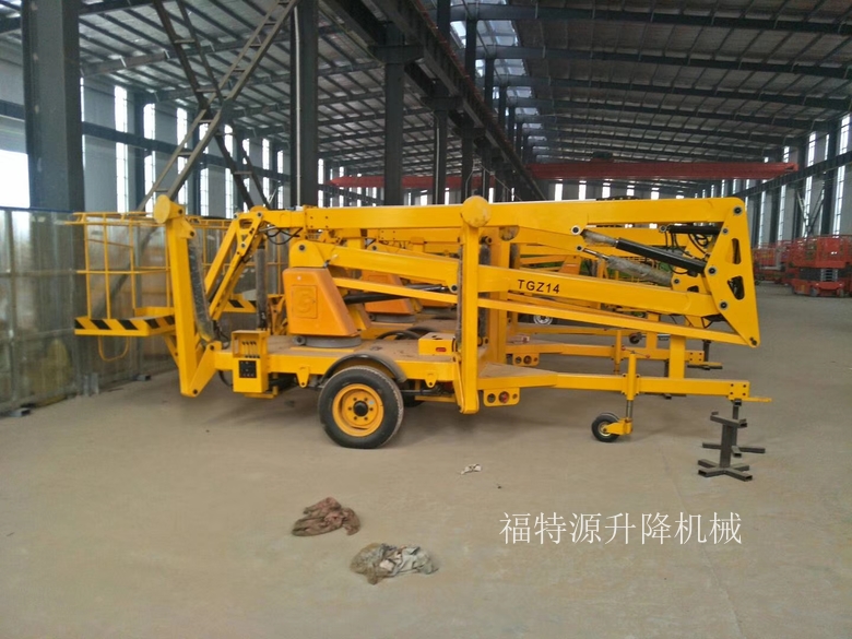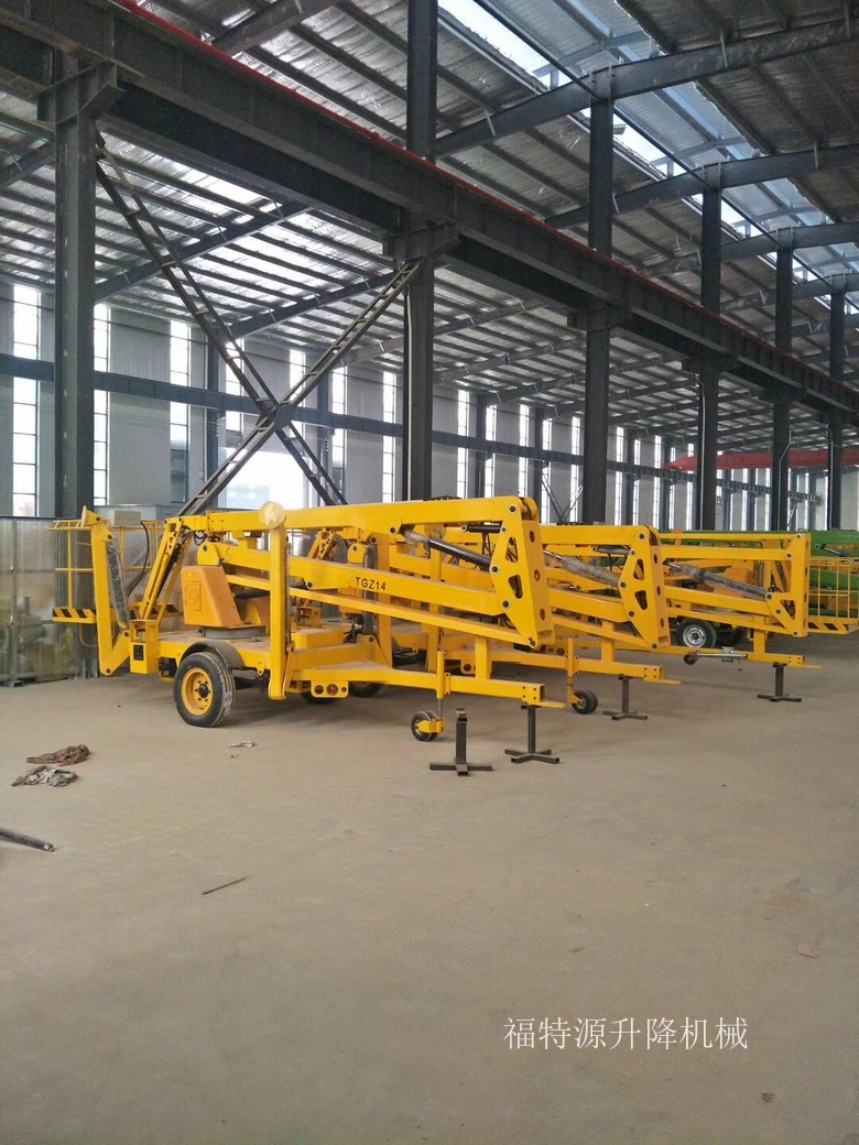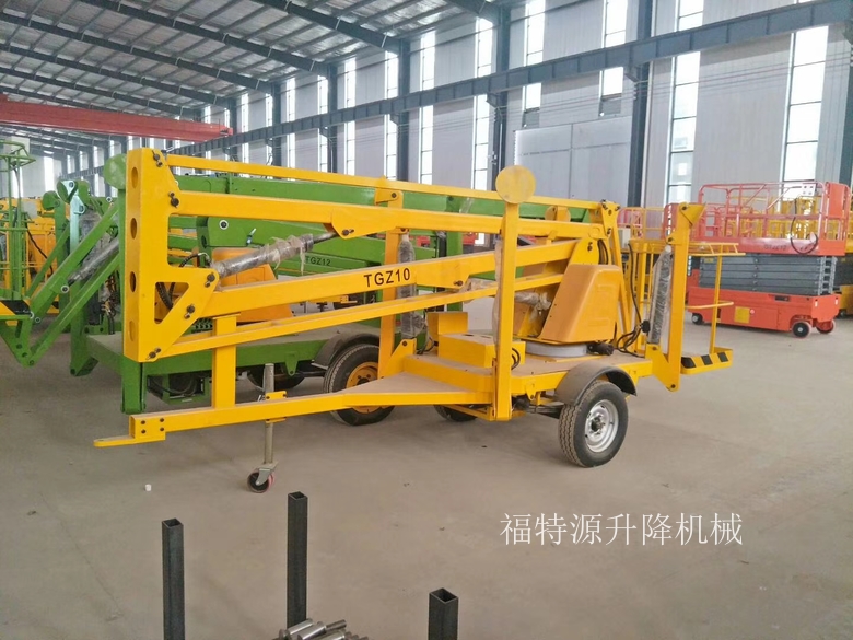 拖車折臂式升降機(jī):可以掛在汽車上,與汽車同步,適合野外高空作業(yè)。