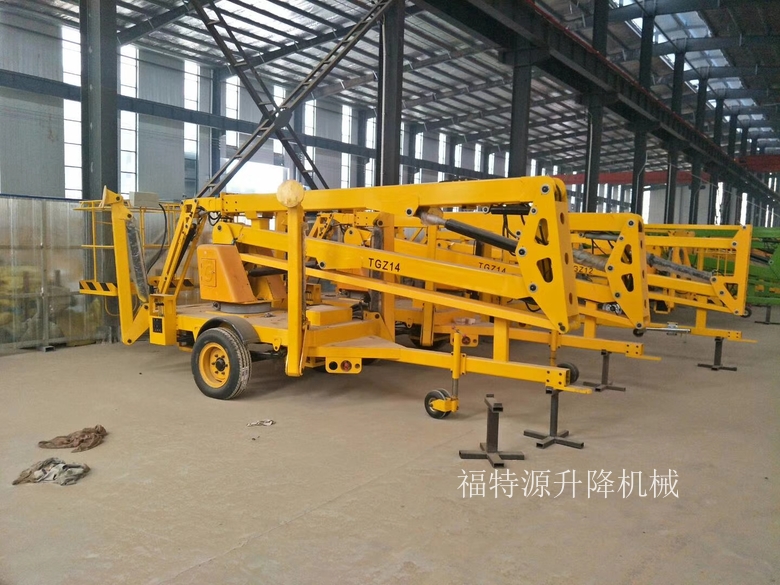 折臂式升降機(jī),是一種360°旋轉(zhuǎn)升降送行人或貨物的液壓升降工具,折臂式升降機(jī)具有移動方便、操作簡單、作業(yè)面大、平衡性能好等特點(diǎn),在路面不平的情況下,即能四腿同時(shí)支撐,也可單腿支撐,便于操作使用,因而廣泛用于車站、碼頭、公共建筑等需從事高空作業(yè)的行業(yè)和領(lǐng)域。
