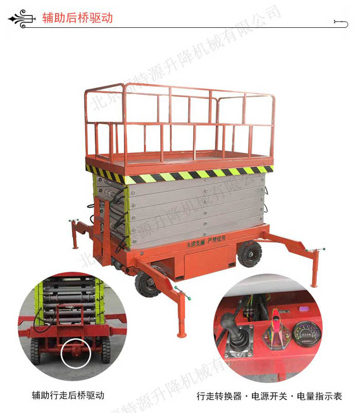 移動式升降機有人工移動式升降機、電動移動式升降機,另備有手壓泵,供停電時使用,具有移動靈活、升降平穩(wěn)、操作方便、載重量大等特點。升降動力分為220V或380V電源,采用國外和國產(chǎn)液壓泵站。主要適用于工廠、物業(yè)單位、商店裝潢、建筑、裝飾、場館館布置、會議中心等行業(yè)。移動式升降機考慮到移動方便性更考慮到較高的穩(wěn)定性,寬大的作業(yè)平臺和較高的承載能力,使高空作業(yè)范圍更大更廣、可以多人同時作業(yè)。提高了工作效率保障了人身安全,的確是高空作業(yè)助手。