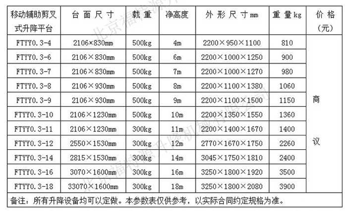 ▍輔助剪叉升降機常規(guī)參數(shù) / Product Parameter